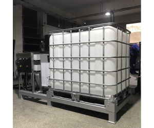 Vasul de prepare apa demineralizata cu o capacitate de 1000 litri este executat din popipropilena si este prevazut cu grilaj metalic si este prevazut cu o deschidere standard in partea de sus de 6"(150mm) si o deschidere in partea de jos de 2"(50mm) pentru alimentare cu apa demineralizata.